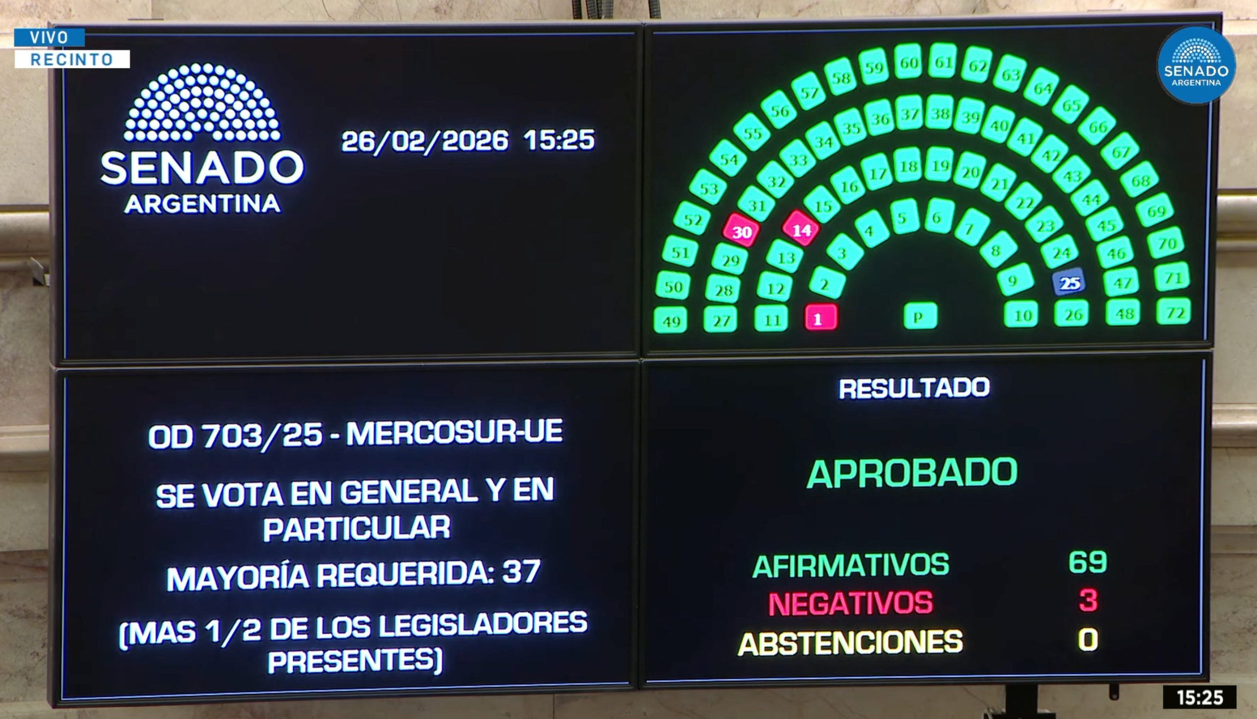 «Sesenta y nueve votos a favor, tres en contra». El frío conteo del tablero electrónico en el Senado no solo marcó el final de una sesión maratónica este jueves, sino el cierre de una agonía diplomática de 25 años. Argentina acaba de cruzar el Rubicón comercial, atando su destino al de las potencias europeas en un escenario de incertidumbre global y promesas de prosperidad inmediata.…
